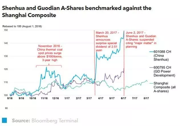 合并完成后,可再生能源(風(fēng)電、光伏和水電)在新公司總發(fā)電容量中的比例將達(dá)到23%。目前風(fēng)電、光伏、核電和水力發(fā)電配額都享有保障性收購(gòu),但在電改之下,越來(lái)越多的煤電容量機(jī)組必須在電力批發(fā)市場(chǎng)中參與競(jìng)爭(zhēng)。在此背景之下,顯然,可再生能源容量對(duì)中國(guó)神華至關(guān)重要。