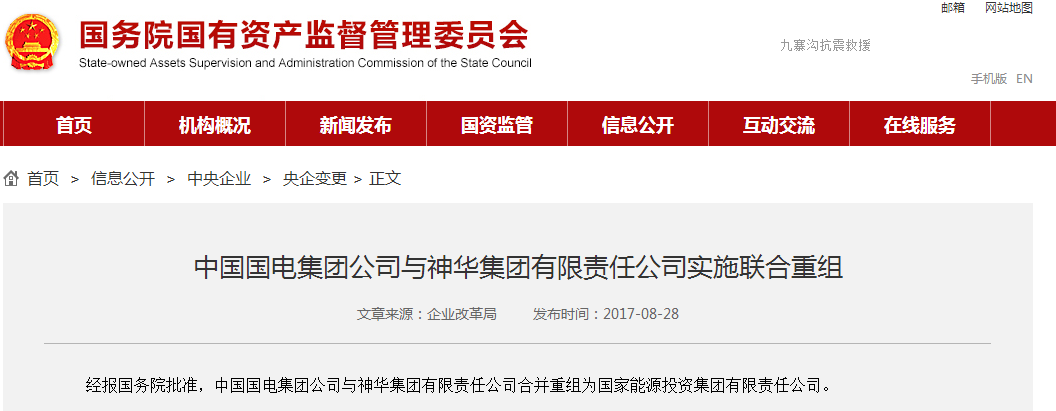 神華集團(tuán)是中國(guó)最大的煤炭生產(chǎn)企業(yè)。在煤炭生產(chǎn)銷售之外,其主營(yíng)業(yè)務(wù)還廣泛涉及火力發(fā)電、鐵路運(yùn)輸、港口航運(yùn)、煤制油煤化工等。2015年煤炭產(chǎn)量4.01億噸、煤炭銷量4.85億噸,旗下煤電裝機(jī)近8000萬千瓦,可再生能源裝機(jī)700萬千瓦(風(fēng)電裝機(jī)500萬千瓦)。2016年神華集團(tuán)營(yíng)收2479億元,凈利潤(rùn)361億元。 國(guó)電集團(tuán)主營(yíng)業(yè)務(wù)涉及發(fā)電、煤炭、金融、科技環(huán)保四大板塊,目前發(fā)電裝機(jī)容量1.43億千瓦,位于五大電企第二。煤炭產(chǎn)量5872萬噸,年含水清潔能源占比30.3%,風(fēng)電裝機(jī)近2583萬千瓦,位居世界第一。2016年國(guó)電集團(tuán)營(yíng)業(yè)收入1836億元,凈利潤(rùn)131億元。 截至3月底,神華集團(tuán)和國(guó)電集團(tuán)的總資產(chǎn)分別為9982億元和8016億元。據(jù)此估算,兩家集團(tuán)實(shí)施聯(lián)合重組后,將合并出一家資產(chǎn)總額超1.7萬億元、發(fā)電裝機(jī)量超2.2萬億千瓦的能源巨無霸。 |
