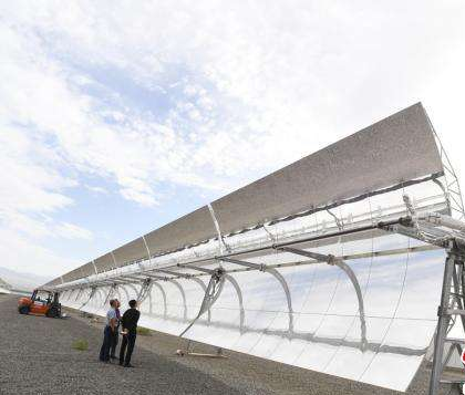 該項目運用全球最領(lǐng)先技術(shù),通過拋物面槽式光熱采集器收集太陽熱能,并通過傳熱介質(zhì)熔鹽(最高可達550℃)進行熱傳遞,其集熱介質(zhì)和儲熱介質(zhì)均采用熔鹽。是國內(nèi)首個熔鹽槽式光熱發(fā)電測試平臺項目,也是全球第一個獨立運行的高溫熔鹽槽式光熱試驗電站。