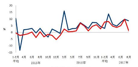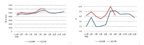 圖12016、2017年分月全社會(huì)用電量及其增速