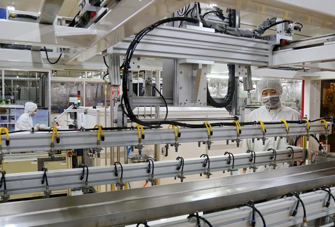 9月20日,工人在寧晉縣晶龍集團(tuán)晶澳公司高效太陽能電池生產(chǎn)線上工作。近日,河北省寧晉縣投資10.53億元的晶龍集團(tuán)晶澳公司高效太陽能電池——博秀P型單晶太陽能電池項目達(dá)產(chǎn)達(dá)效。至此,該縣單晶太陽能產(chǎn)量達(dá)到3000兆瓦,形成了以太陽能電池研發(fā)和生產(chǎn)為主導(dǎo)、附屬產(chǎn)業(yè)為配套的光伏產(chǎn)業(yè)聚集區(qū),年產(chǎn)值達(dá)150億元。新華社記者楊世堯攝