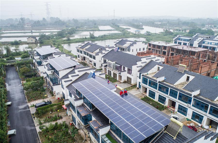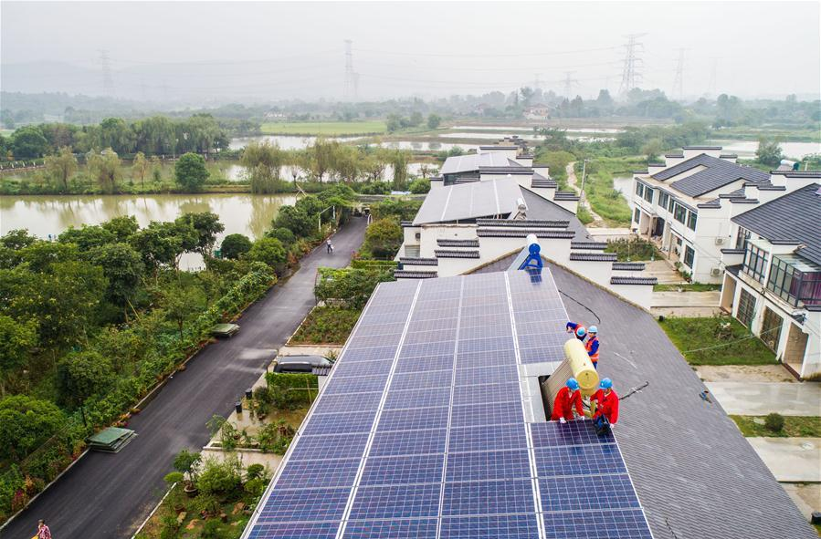 9月27日,在浙江省長興縣林城鎮(zhèn)北湯村,工作人員在對當(dāng)?shù)貏倓偨ǔ傻奈蓓敼夥M(jìn)行并網(wǎng)驗收。2017年初,浙江省長興縣林城鎮(zhèn)提出“統(tǒng)一規(guī)劃、統(tǒng)一設(shè)計、統(tǒng)一施工、整村推進(jìn)、惠民到家、長效服務(wù)”的光伏村建設(shè)模式,把北湯村作為農(nóng)村光伏發(fā)電示范建設(shè)村,預(yù)計到2017年底,北湯村500余戶居民光伏將全部并網(wǎng),總發(fā)電容量將超過6000千瓦。