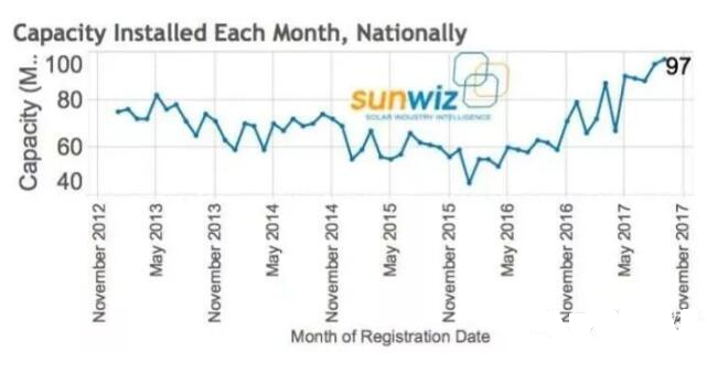 到2017年9月澳大利亞新增屋頂光伏(含居民、商業(yè))97兆瓦,今年前9個(gè)月新增780兆瓦,預(yù)計(jì)2017年全年屋頂光伏裝機(jī)超過(guò)1吉瓦。