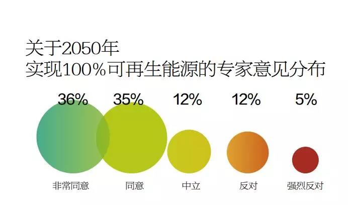 在REN21針對全球114名能源專家的調(diào)查中,所有專家都同意可再生能源開發(fā)規(guī)模將繼續(xù)增長,但是,對于2050年全球經(jīng)濟社會是否能夠100%依賴可再生能源,卻并未形成共識。