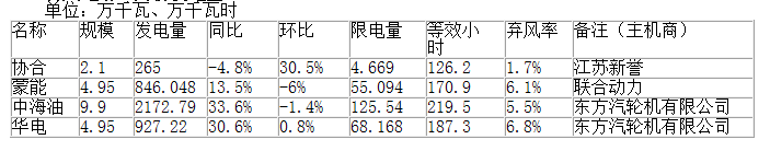 各風(fēng)電場10月份發(fā)電量