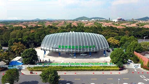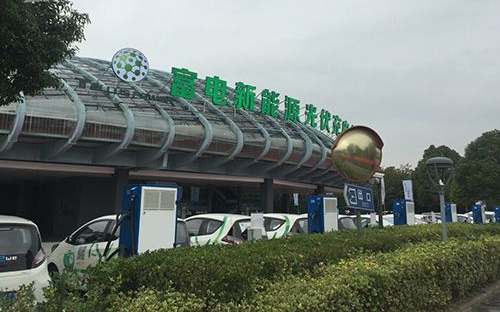 上海富電光伏超級充電站位于上海松江區(qū)北端,雄踞上海歡樂谷旁,是國內(nèi)最大、最先進、功能最完善的光伏超級充電站。它由富電集團自主投資、設(shè)計、興建并投入運營。充電站于2016年開工,歷時近2年,今天正式啟用。