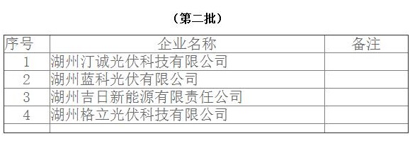 按照湖州市發(fā)展和改革委員會(huì)關(guān)于印發(fā)《湖州市家庭屋頂光伏企業(yè)規(guī)范要求》通知(湖發(fā)改能源〔2017〕117號(hào)),根據(jù)《湖州市加快家庭屋頂光伏工程建設(shè)的實(shí)施意見(jiàn)》,經(jīng)審核認(rèn)定,符合《湖州市家庭屋頂光伏企業(yè)規(guī)范要求》的前三批規(guī)范企業(yè)共18家企業(yè)入圍。