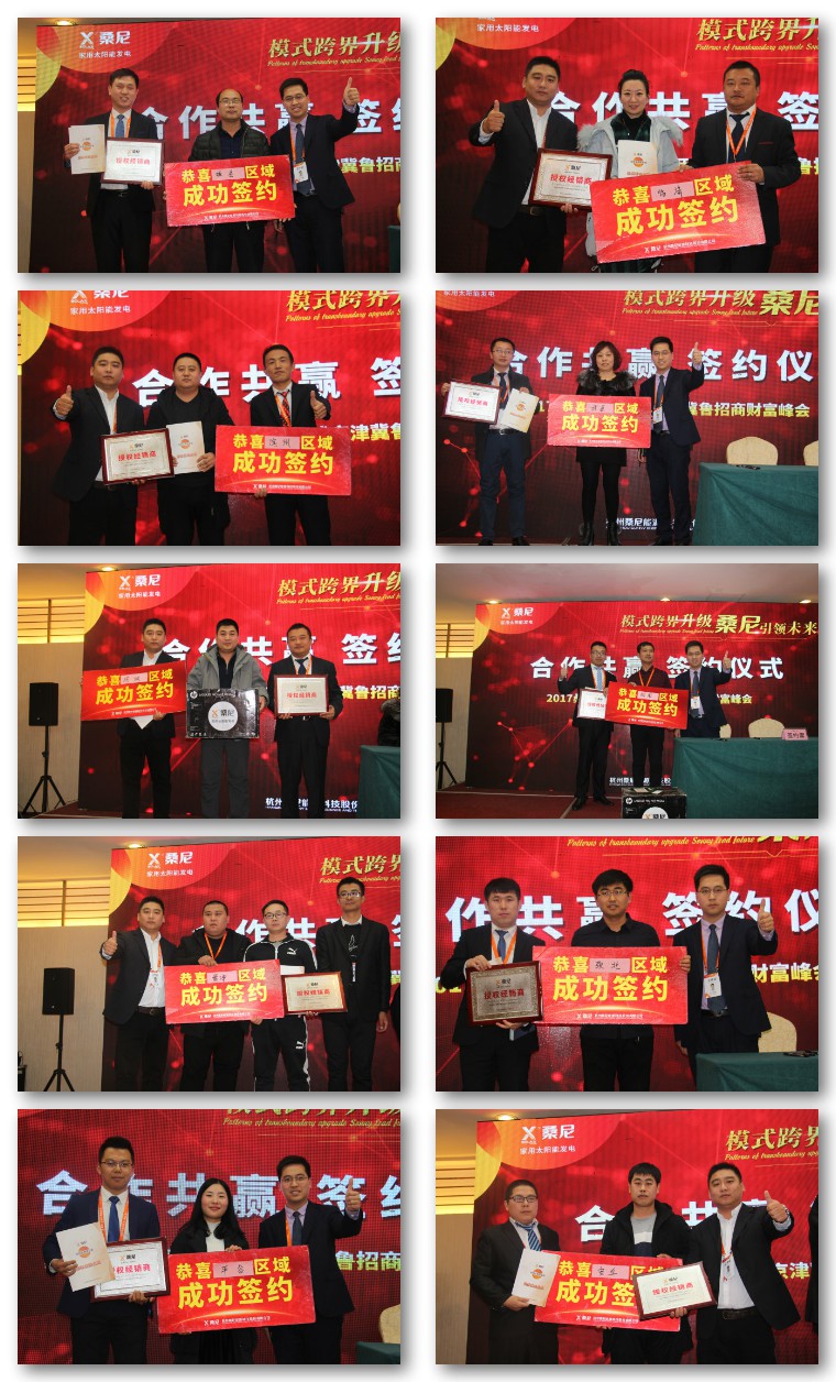 作為本年度京津魯冀的收官之戰(zhàn),桑尼能源對本次招商峰會相當重視,家用事業(yè)部招商總監(jiān)馮良飛、家用事業(yè)部山東區(qū)總經(jīng)理何蕾、家用事業(yè)部京津冀區(qū)總經(jīng)理蔡鵬濤以及家用事業(yè)部品牌市場負責(zé)人郭向前均到現(xiàn)場助陣,并分別向參會的經(jīng)銷商們介紹了桑尼能源的優(yōu)勢與核心競爭力、金融支持以及現(xiàn)場簽約的相關(guān)優(yōu)惠和扶持政策。強大的企業(yè)實力和大力度的加盟扶持政策,使得現(xiàn)場經(jīng)銷商紛紛排隊簽約,最終簽約率超過60%,讓今年桑尼能源在京津魯冀地區(qū)的招商峰會圓滿收官。