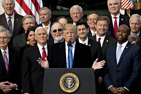 美國(guó)參眾兩院分別表決通過共和黨提交的稅改議案,只待特朗普圣誕節(jié)前簽字成為法律正式生效。由此,特朗普兌現(xiàn)競(jìng)選承諾再下一城,成為“特靠譜”。共和黨認(rèn)為稅法改革能夠幫助美國(guó)獲得年增速3%的經(jīng)濟(jì),“讓美國(guó)重新成為對(duì)做生意而言最好的國(guó)家”。但是民主黨人則抨擊稅改擴(kuò)大貧富差距,并將為美國(guó)高企的20萬億美元債務(wù),