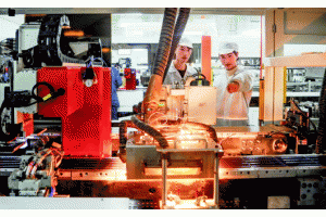 1月18日,該公司生產(chǎn)車間里,工人們正在操作智能化生產(chǎn)設備