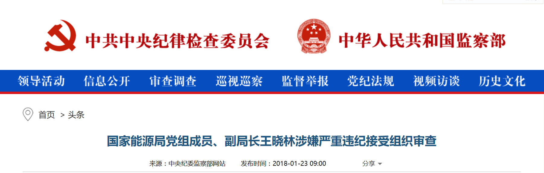 國家能源局黨組成員、副局長王曉林涉嫌嚴重違紀,目前正接受組織審查。