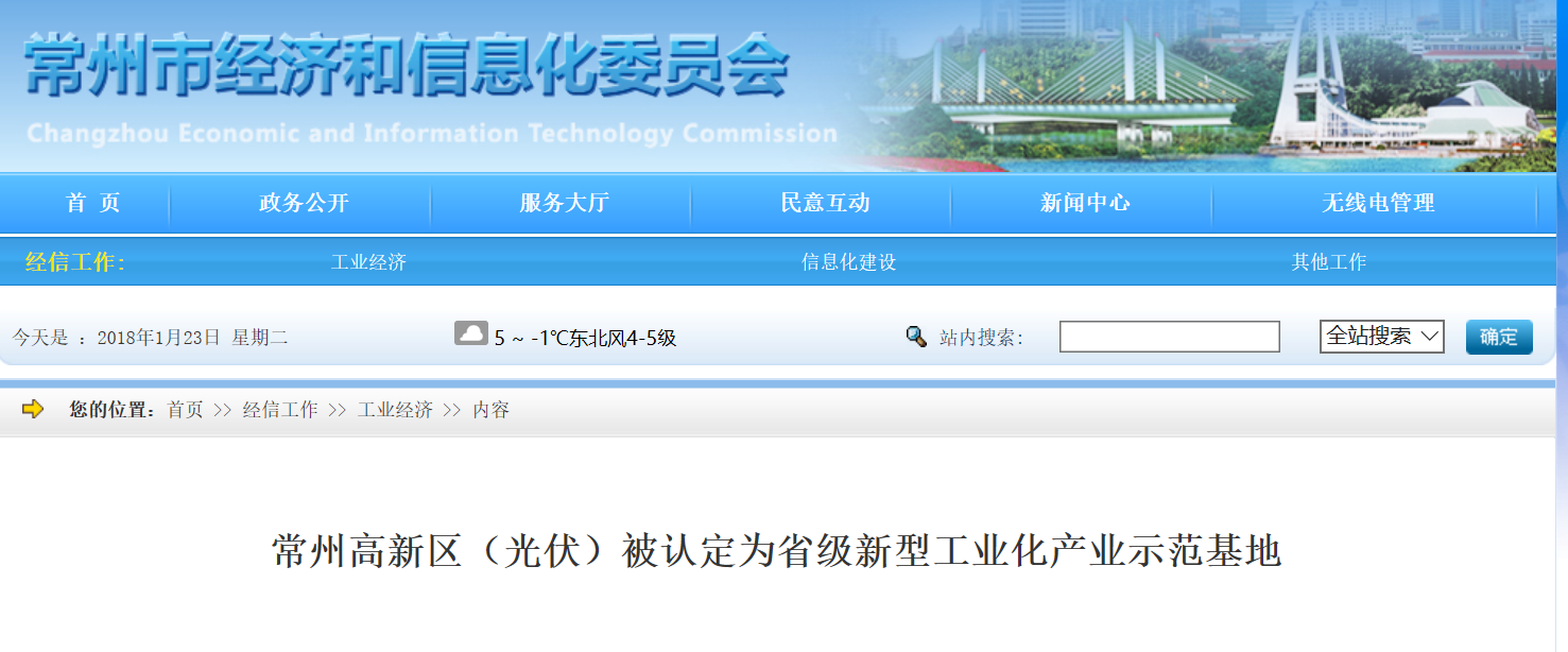 新型工業(yè)化產業(yè)示范基地是按照產業(yè)集約、集聚、創(chuàng)新發(fā)展要求,形成的主導產業(yè)特色鮮明、發(fā)展水平和規(guī)模效益居行業(yè)領先地位,在協(xié)同創(chuàng)新、集群集約、智能融合、綠色安全等方面具有示范作用,走在前列的產業(yè)集聚集群區(qū)。常州高新區(qū)光伏產業(yè)經過近二十年的發(fā)展,現(xiàn)已形成了以天合光能、協(xié)鑫光伏為龍頭,其他光伏企業(yè)相配套的“垂直一體化”發(fā)展鏈條,擁有光伏制造骨干企業(yè)20多家,產值350億元左右,成為全國最大的光伏產品生產和研發(fā)基地。