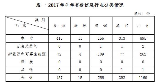 為保護(hù)能源投資者、經(jīng)營(yíng)者、使用者的合法權(quán)益,維護(hù)能源市場(chǎng)秩序,西北能源監(jiān)管局積極發(fā)揮12398能源監(jiān)管熱線作用,暢通投訴舉報(bào)渠道,加強(qiáng)輿情監(jiān)測(cè),2017年共收到陜、寧、青三。▍^(qū))有效事項(xiàng)1160件,依法受理166件,同比增長(zhǎng)22.96%,截止12月31日,已辦結(jié)165件,未辦結(jié)1件。現(xiàn)將有關(guān)情況通報(bào)如下