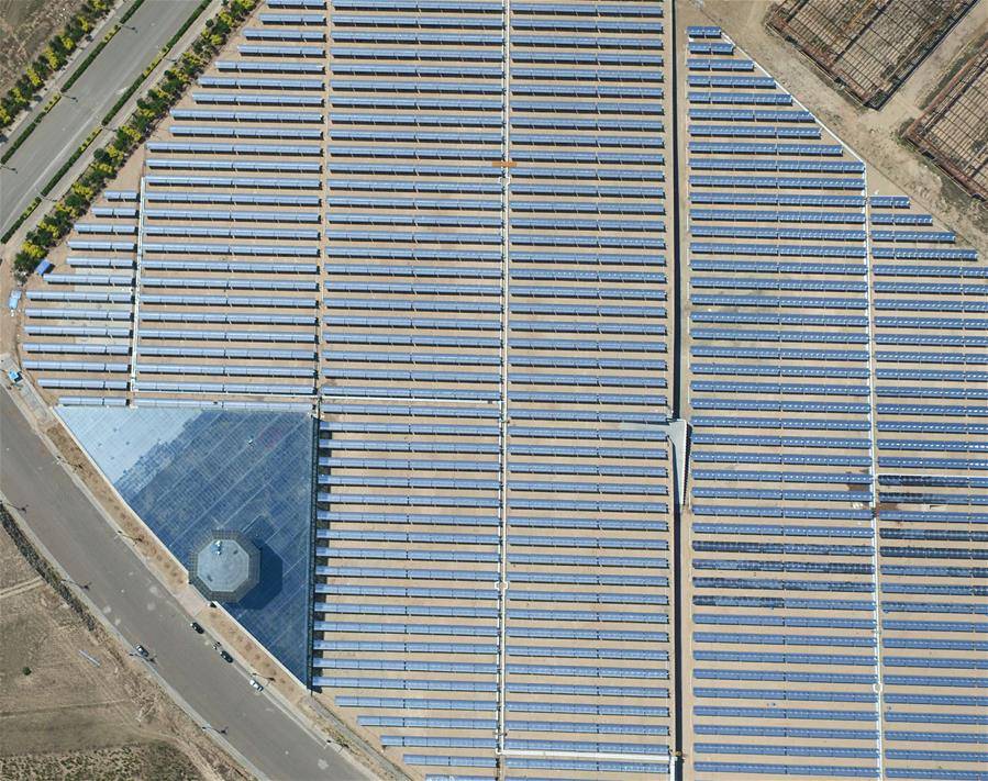 這是包頭市太陽能光熱利用項目中的一個大型太陽能反射鏡場