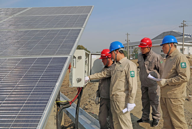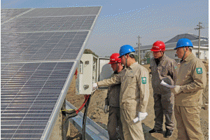 國網(wǎng)東臺市供電公司營銷人員到東臺市南沈灶鎮(zhèn)沿海高速南沈灶收費站為江蘇云杉淸潔能源有限公司檢查驗收新3.2兆瓦光伏電站的電器控制設備、逆變裝置和變壓器,同時檢查設備的連接線及防雷接地裝置,確保光伏發(fā)電并網(wǎng)后安全運行。