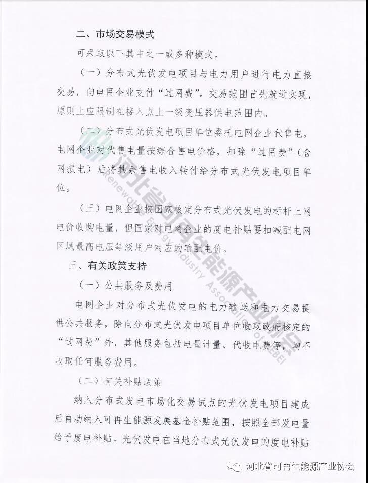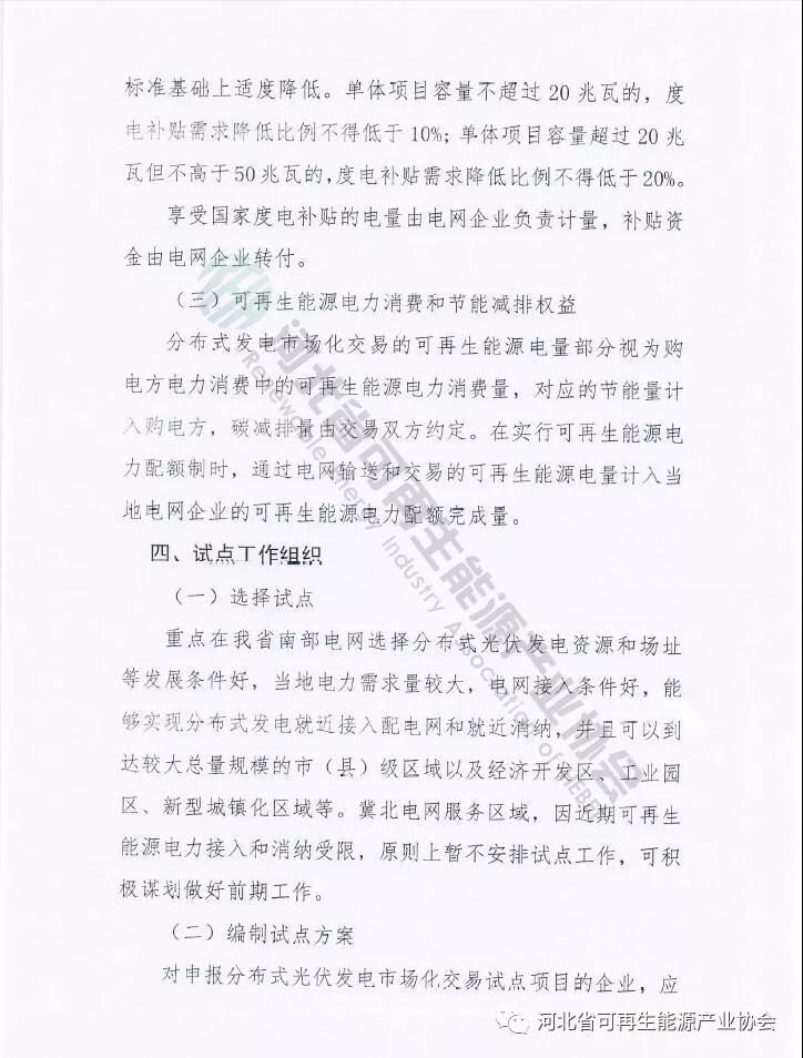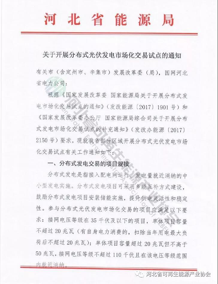 河北省能源局《關(guān)于開展分布式光伏發(fā)電市場化交易試點的通知》