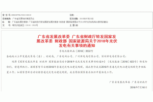 7月23日,廣東省發(fā)展改革委、廣東省財(cái)政廳轉(zhuǎn)發(fā)國(guó)家發(fā)展改革委、財(cái)政部、國(guó)家能源局關(guān)于2018年光伏發(fā)電有關(guān)事項(xiàng)的通知,因國(guó)家暫不安排2018年普通光伏電站建設(shè)規(guī)模,因此暫停我省2018年普通光伏電站建設(shè)規(guī)模競(jìng)爭(zhēng)性配置工作;如國(guó)家重新啟動(dòng)安排普通光伏電站建設(shè)規(guī)模,我省將按國(guó)家要求組織開(kāi)展相關(guān)工作。