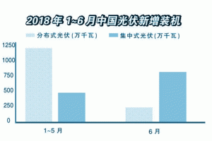 上半年光伏發(fā)電新增裝機(jī)2430萬(wàn)千瓦,其中,光伏電站1206萬(wàn)千瓦,同比減少30%;分布式光伏發(fā)電新增1224萬(wàn)千瓦,同比增長(zhǎng)72%。到6月底,全國(guó)光伏發(fā)電裝機(jī)達(dá)到15451萬(wàn)千瓦,其中,光伏電站11260萬(wàn)千瓦,分布式光伏發(fā)電4190萬(wàn)千瓦。