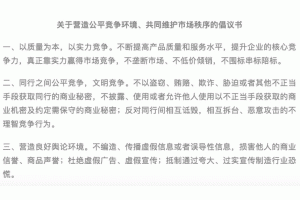 行業(yè)輿論方面,倡議書要求營造良好輿論環(huán)境。不編造、傳播虛假信息或者誤導(dǎo)性信息,損害他人的商業(yè)信譽(yù)、商品聲譽(yù);杜絕虛假廣告、虛假宣傳;抵制通過夸大、過實(shí)宣傳制造行業(yè)恐慌;嚴(yán)格遵守所在國法律法規(guī),營造公平競爭的市場秩序,履行好企業(yè)公民的社會(huì)責(zé)任等。