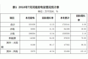(一)發(fā)電量情況。7月份當(dāng)月,全省發(fā)電量320.19億千瓦時,同比增長12.23%。其中水電9.29億千瓦時,同比增加31.53 %;火電296.66億千瓦時,同比增加10.04 %;新能源14.24億千瓦時,同比增長64.95%。