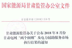 11月12日,甘肅能源監(jiān)管辦發(fā)布《關(guān)于公布2018年8月份甘肅電網(wǎng)“兩個細(xì)則”及電力輔助服務(wù)市場執(zhí)行結(jié)果的通知》,通知如下: