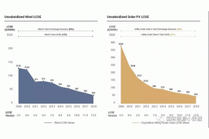 據(jù)公布的美國(guó)各類能源發(fā)電平準(zhǔn)化成本數(shù)據(jù)顯示,2009年到2018年,美國(guó)大型地面光伏LCOE下降88%,9年來(lái)年平均下降21%。毋庸置疑,光伏發(fā)電成本最便宜: