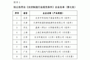 1.擬公告符合《光伏制造行業(yè)規(guī)范條件》企業(yè)名單(第七批)