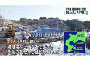 據(jù)早前《北海道新聞》報(bào)道,11月26日,有46名從事太陽能電站建設(shè)的中國工人在日本北海道失蹤。據(jù)了解,該位于北海道的太陽能光伏發(fā)電站建設(shè)工地共有58名中國工人,在11月25日有一人病故,26日有11名中國工人在建筑工地被警方逮捕,剩下46人遂失蹤。