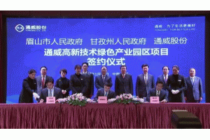 據(jù)報道,1月25日,通威集團(tuán)與眉山市政府、甘孜州政府簽定通威高新技術(shù)綠色產(chǎn)業(yè)園區(qū)項目暨10GW高效晶硅電池項目投資協(xié)議,總投資60億元以上,新建約50條高效晶硅電池生產(chǎn)線。預(yù)計全部建成投產(chǎn)后年產(chǎn)值不低于120億元,將打造全球智能化程度最高、量產(chǎn)轉(zhuǎn)換效率最高、節(jié)能環(huán)保的綠色工廠。據(jù)悉,這將是全球目前最大的高效晶硅電池項目落戶。