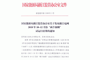 從浙江監(jiān)管辦獲悉:2月14日,國家能源局浙江監(jiān)管辦公室發(fā)布《浙江電網(wǎng)2018年10-12月份“兩個細(xì)則”試運(yùn)行結(jié)果的通知》。通知表示:10-12月份“兩個細(xì)則”試運(yùn)行結(jié)果公示期間,監(jiān)管辦公室未收到正式申述報告,根據(jù)“兩個細(xì)則”規(guī)定,現(xiàn)正式發(fā)布浙江電網(wǎng)2018年10-12月份“兩個細(xì)則”試運(yùn)行結(jié)果,請各有關(guān)企業(yè)據(jù)此通知,將“兩個細(xì)則”試運(yùn)行結(jié)果連同2019年1月份電費(fèi)一并進(jìn)行結(jié)算。