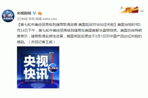 據(jù)央視新聞,美國(guó)總統(tǒng)特朗普表示,磋商取得實(shí)質(zhì)性進(jìn)展,美國(guó)將延后原定于3月1日對(duì)中國(guó)產(chǎn)品加征關(guān)稅的措施。美國(guó)當(dāng)?shù)貢r(shí)間2月24日下午,第七輪中美經(jīng)貿(mào)高級(jí)別磋商在美國(guó)首都華盛頓結(jié)束。美國(guó)總統(tǒng)特朗普表示,磋商取得實(shí)質(zhì)性進(jìn)展,美國(guó)將延后原定于3月1日對(duì)中國(guó)產(chǎn)品加征關(guān)稅的措施。