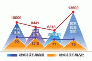 大唐集團落實打贏藍天保衛(wèi)戰(zhàn)行動計劃,截至2018年底,全集團累計超低排放機組達到226臺、9427.5萬千瓦,占在役燃煤機組容量的94.7%,容量占比居行業(yè)先進水平。華能集團累計281臺、11200萬千瓦煤機實現(xiàn)超低排放,比重達到94%,提前完成國家下達的 “十三五”改造任務。國家能源集團超低排放機組達到343臺、總裝機16000萬千瓦,占煤電機組總量的91%。華電集團中東部地區(qū)燃煤機組基本完成超低排放改造,超低排放機組占比達到86.5%,為7713萬千瓦。(國家電投集團數(shù)據(jù)略)