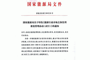 據(jù)國家能源局網站獲悉,日前,國家能源局發(fā)布《關于印發(fā)《能源行業(yè)市場主體信用修復管理辦法(試行)》的通知》,鼓勵和引導能源行業(yè)失信主體主動糾正失信行為,消除不良影響,形成良好的行業(yè)誠信氛圍。