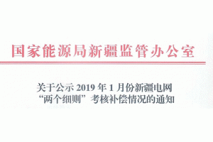 國(guó)家能源局新疆監(jiān)管辦今日印發(fā)《關(guān)于公示2019年1月份新疆電網(wǎng)“兩個(gè)細(xì)則”考核補(bǔ)償情況的通知》,正式公布《2019年1月新疆電網(wǎng)“兩個(gè)細(xì)則”考核補(bǔ)償公示結(jié)果》。通知及光伏部分公示結(jié)果如下: