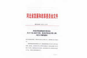 5月28日,河北省發(fā)展和改革委員會下達2019年第一批光伏發(fā)電平價上網(wǎng)項目計劃,第一批光伏發(fā)電平價上網(wǎng)項目14個、145.8萬kW。其中光伏發(fā)電平價上網(wǎng)項目11個、130.8萬kW,分布式發(fā)電市場化交易試點項目3個、15萬kW。備選項目55個,581.5萬kW。