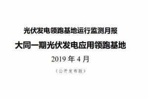 大同發(fā)改委官網(wǎng)今日公布了《大同一期光伏發(fā)電應(yīng)用領(lǐng)跑基地運(yùn)行監(jiān)測(cè)月報(bào)(2019年4月)》,原文如下: