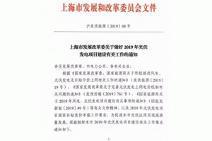 根據(jù)上海市發(fā)改委日前發(fā)布的《關(guān)于做好2019年光伏發(fā)電項(xiàng)目建設(shè)有關(guān)工作的通知》,要求各區(qū)發(fā)展改革委于6月25日前將項(xiàng)目申報(bào)表,相關(guān)支持性文件及說明書面報(bào)送至上海市發(fā)改委。