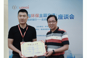 中華環(huán)保聯(lián)合會(huì)有關(guān)負(fù)責(zé)人向隆基股份頒發(fā)會(huì)員證書(shū)