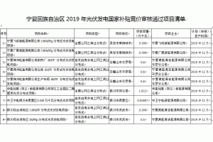7月10日,寧夏自治區(qū)發(fā)展改革委印發(fā)《關(guān)于全區(qū)2019年光伏發(fā)電國(guó)家補(bǔ)貼競(jìng)價(jià)項(xiàng)目審核結(jié)果的通知》,按照《國(guó)家能源局關(guān)于2019年風(fēng)電、光伏發(fā)電項(xiàng)目建設(shè)有關(guān)事項(xiàng)的通知》有關(guān)要求,經(jīng)對(duì)各地初審并推薦上報(bào)2019年光伏發(fā)電項(xiàng)目的主體規(guī)模、電網(wǎng)接入、土地利用及稅費(fèi)政策等條件進(jìn)行審核,確定了30個(gè)項(xiàng)目總?cè)萘?79.42687萬(wàn)千
