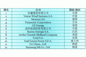 全球新能源企業(yè)500強(qiáng)發(fā)布 中國企業(yè)數(shù)下滑但規(guī)模增長