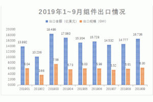 相較八月組件出口5.91GW,總金額14.78億美元,九月組件出口實現(xiàn)了價量齊飛,同時也達到了2019年下半年的出口小巔峰,整體出口形勢良好。中國組件產(chǎn)能占全球組件產(chǎn)能的七成至八成,組件出口數(shù)據(jù)間接也反映了海外市場的活力和繁榮。