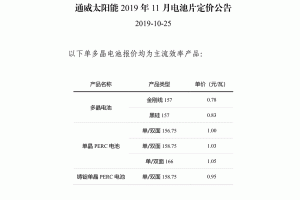通威太陽能11月單多晶電池片報價公告
