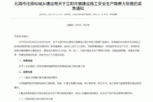 近日,北海市住房和城鄉(xiāng)建設(shè)局印發(fā)《關(guān)于立即開展建設(shè)施工安全生產(chǎn)隱患大排查的緊急通知》,據(jù)通知顯示,10月28日11點(diǎn)20分左右,位于北海市鐵山港區(qū)興港鎮(zhèn)信義路1號(hào)信義玻璃產(chǎn)業(yè)園內(nèi),未報(bào)建的光伏聯(lián)合車間成品工段項(xiàng)目鋼結(jié)構(gòu)施工現(xiàn)場(chǎng)發(fā)生鋼結(jié)構(gòu)廠房坍塌事故,造成1人死亡1人受傷。通知要求立即排查全市(含合浦縣)所有在建房屋建筑和市政基礎(chǔ)設(shè)施工程在建工地,加強(qiáng)監(jiān)測(cè)預(yù)警、排查安全隱患,完善應(yīng)急響應(yīng)機(jī)制。