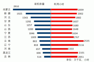 圖5 1-11月份風電裝機較多省份風電裝機容量和設備利用小時