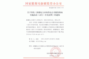今日從新疆能源監(jiān)管獲悉,鑒于《新疆電力市場售電公司履約保函實施辦法(試行)》在實施過程中市場主體反映的部分急需解決的問題,新疆能源監(jiān)管印發(fā)《新疆電力市場售電公司履約保函實施辦法(試行)補充說明》,特對本辦法設置過渡期,具體期限為2020年1月1日至12月31日。
