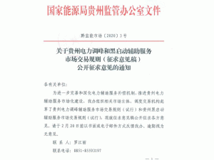 貴州電力調(diào)峰和黑啟動(dòng)輔助服務(wù)市場(chǎng)交易規(guī)則公開(kāi)征求意見(jiàn)