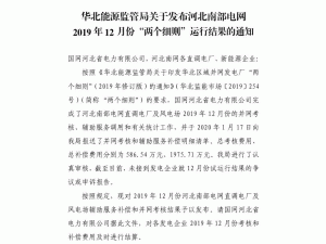 河北南部電網(wǎng)2019年12月份“兩個細(xì)則”運行結(jié)果