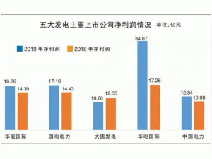 截至4月14日,五大發(fā)電央企主要上市公司華能?chē)?guó)際、國(guó)電電力、大唐發(fā)電、華電國(guó)際、中國(guó)電力均完成2019年度業(yè)績(jī)報(bào)告(以下簡(jiǎn)稱(chēng)“年報(bào)”)披露工作。綜合年報(bào)看,在營(yíng)收平穩(wěn)增長(zhǎng)的同時(shí),煤炭?jī)r(jià)格下降明顯提振了以煤電資產(chǎn)為主的各上市公司盈利水平,利潤(rùn)水平也得到修復(fù)。不過(guò),在煤電行業(yè)大面積虧損的情況下,各公司旗下頻現(xiàn)煤電資產(chǎn)破產(chǎn)、減值處置等情況,短時(shí)間內(nèi)拖累了整體業(yè)績(jī)。