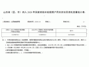 附件:1、山西省納入2020年國(guó)家財(cái)政補(bǔ)貼規(guī)模戶用光伏項(xiàng)目裝機(jī)容量統(tǒng)計(jì)表