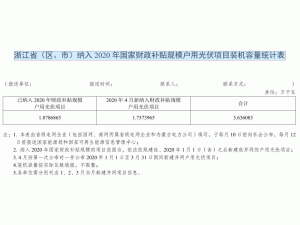 浙江公布2020 年國家財政補(bǔ)貼規(guī)模戶用光伏項(xiàng)目裝機(jī)容量統(tǒng)計(jì)
